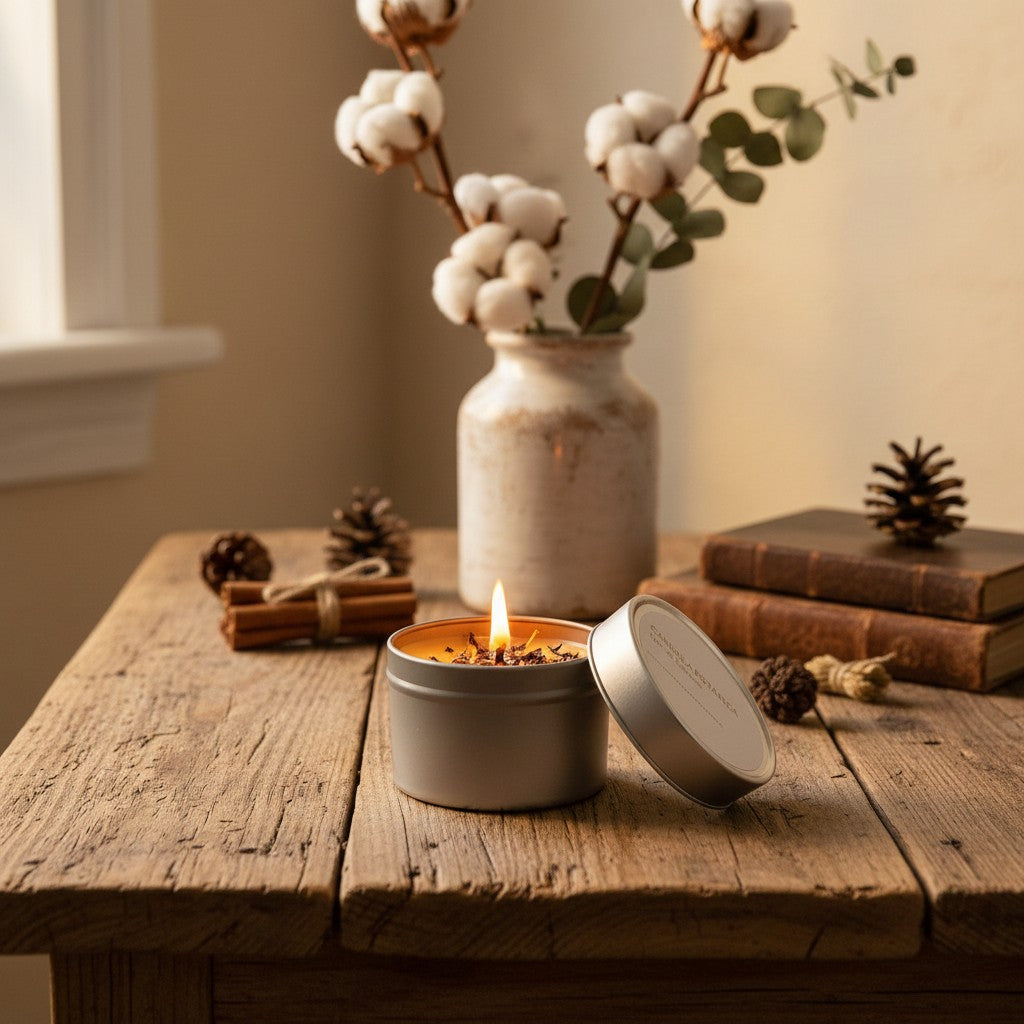 Cere naturali a combustione pulita, fiori essiccati e profumazioni ricercate per creare un’atmosfera calda e avvolgente. Ogni candela è colata a mano, impreziosita da elementi botanici autentici e pensata come regalo elegante e sostenibile per illuminare le feste con un tocco artigianale.
