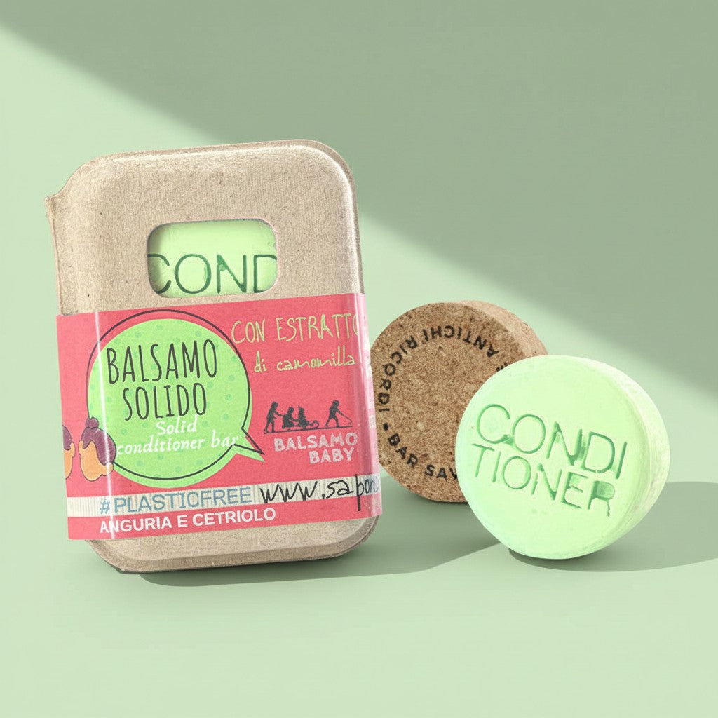 Balsamo solido Anguria e Cetriolo Baby, ideale per i più piccoli. Arricchito con burro di cacao ed estratto di camomilla. Dura fino a 12 mesi, perfetto per capelli delicati e morbidi.